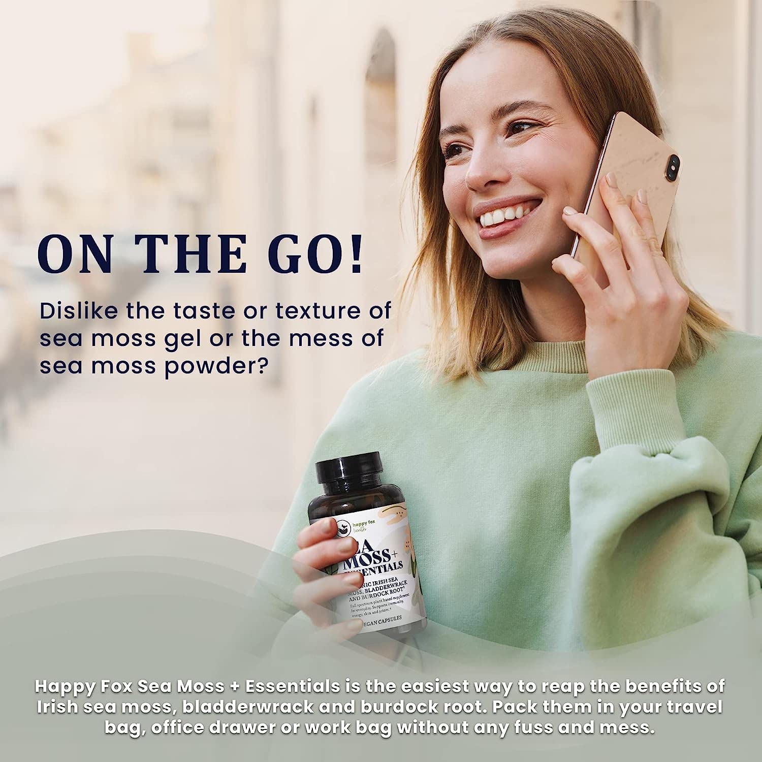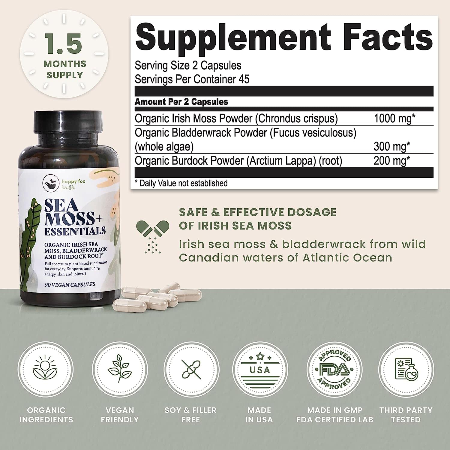 HAPPY FOX Irish Sea Moss Capsules with Burdock Root & Bladderwrack - Alternative to Seamoss Gummies or Powder, 90 Vegan Capsules, Made in USA