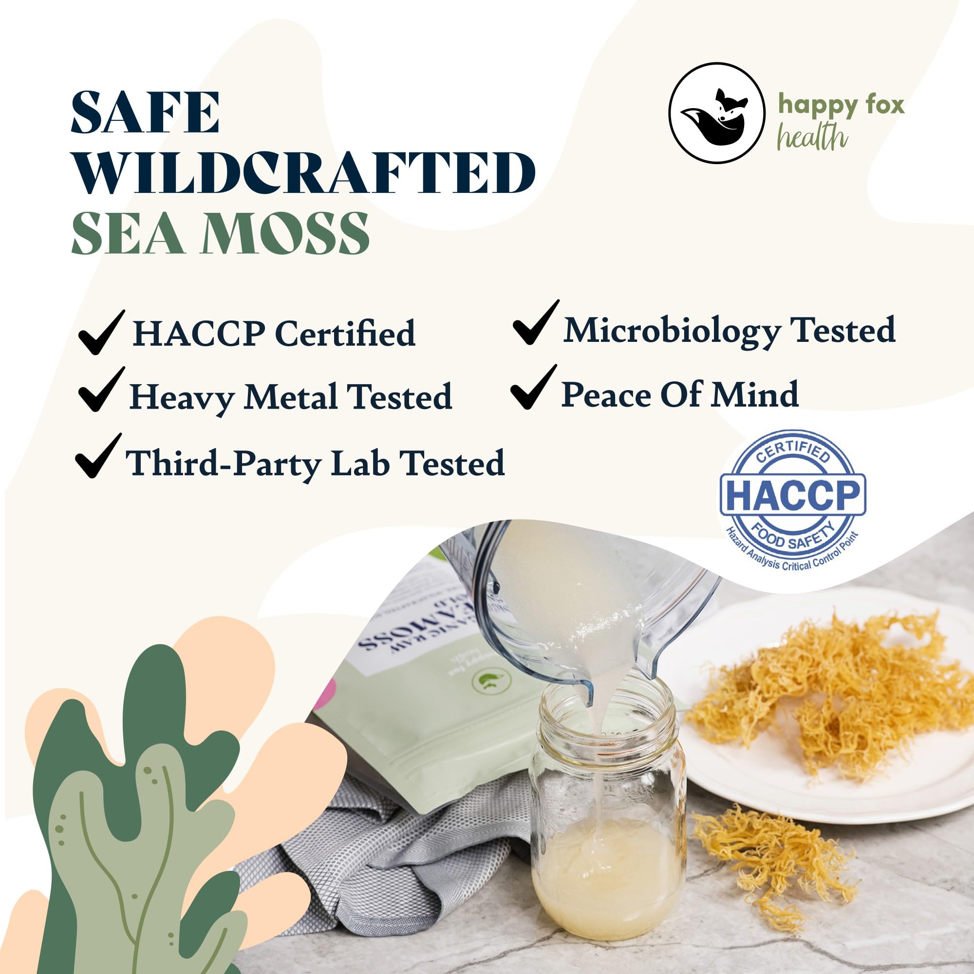 • SAFE WILD SEA MOSS: We only harvest our sea moss from pristine locations and process in HACCAP certified facilities. Our processes always include third-party heavy metal and microbiological testing for your peace of mind and to provide the best for your health.