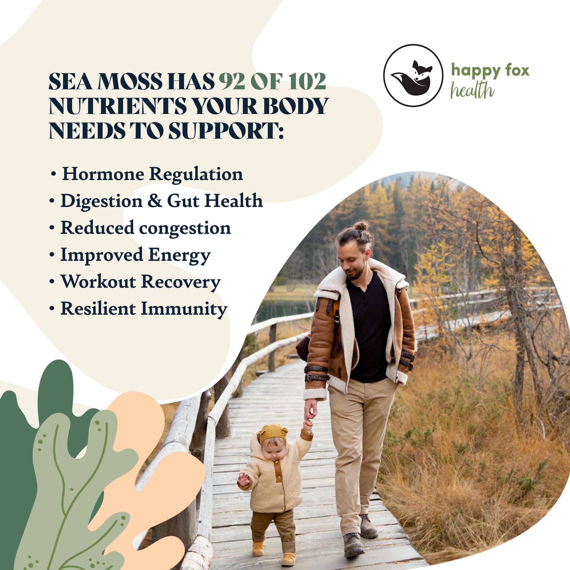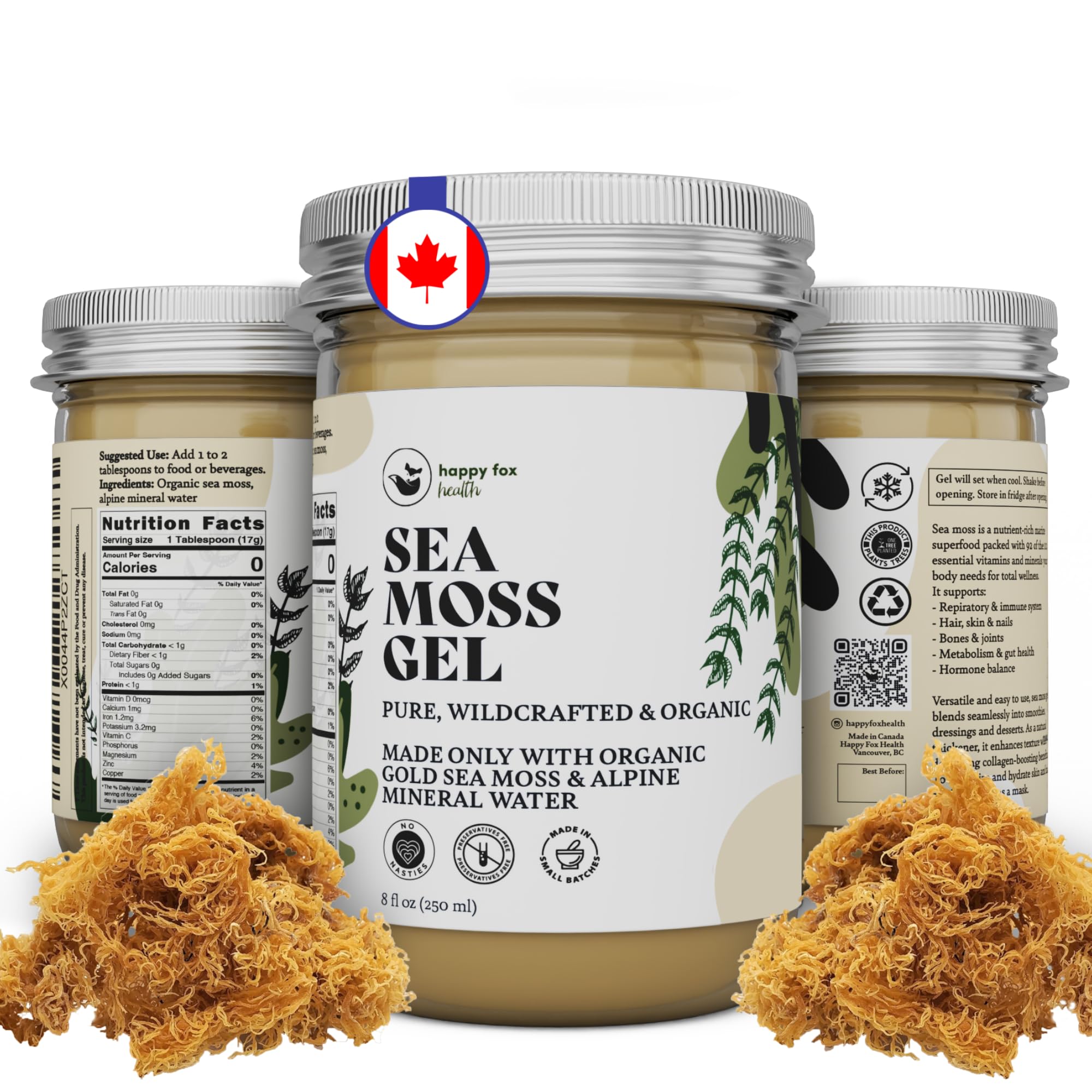 HAPPY FOX Organic Sea Moss Gel Made from Real Seamoss & Alpine Mineral Water. Pure Wildcrafted Sea Moss, Small Batch Made & Approved by Dr Sebi Sea Moss Gel. Shelf Stable, 8 fl oz.
