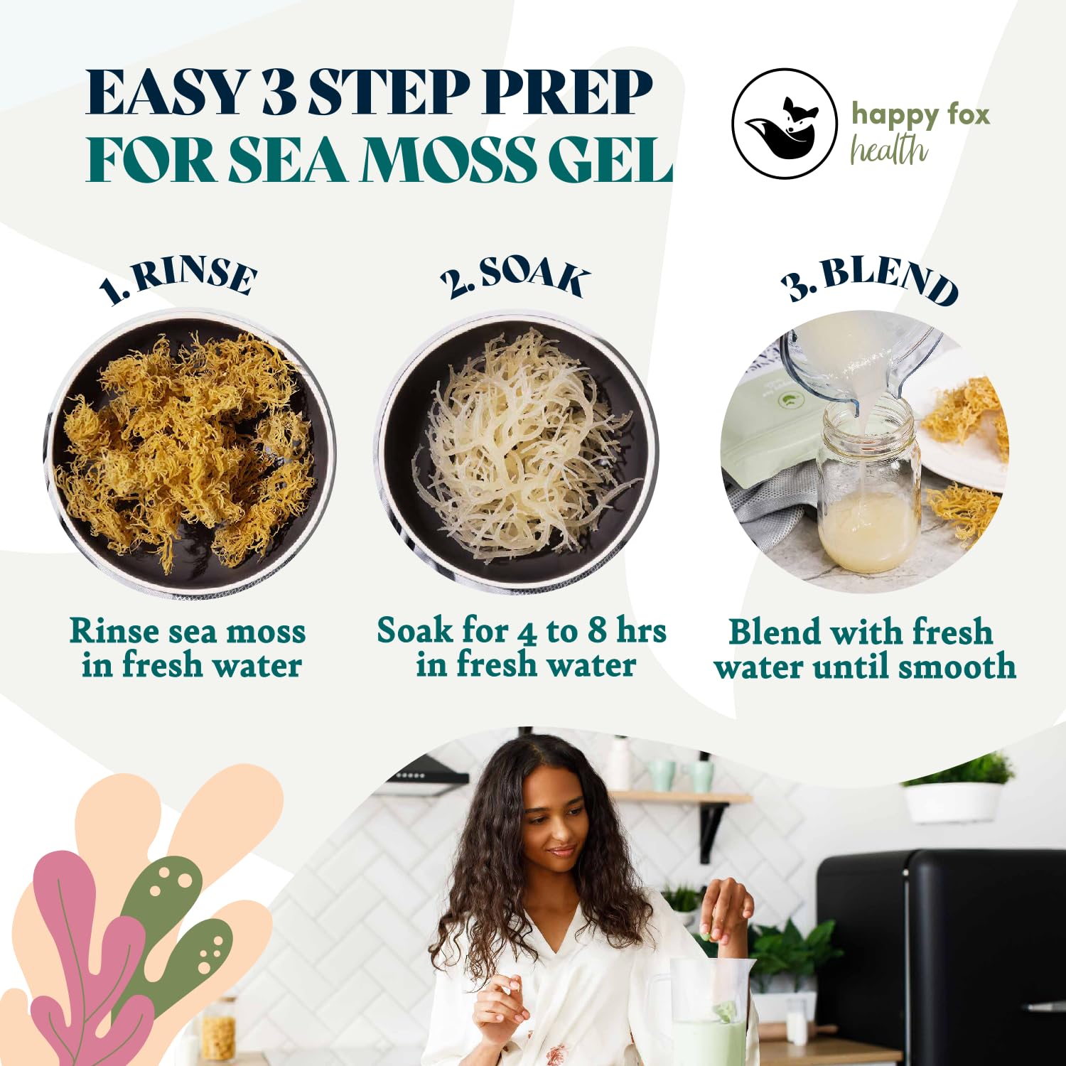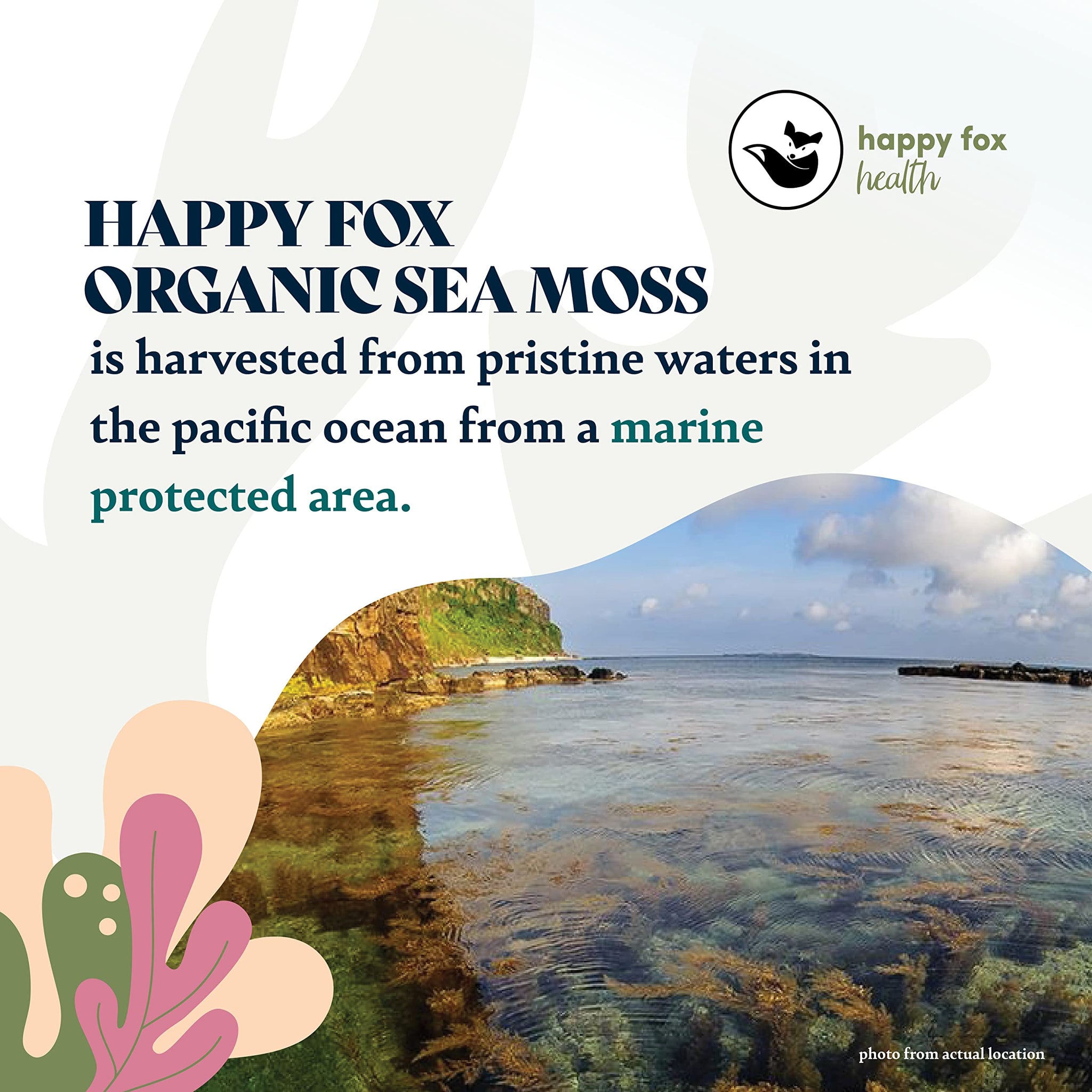 HAPPY FOX Organic Sea Moss Raw Gold - Makes 75oz of Seamoss Gel Rich in Vitamins & Minerals, Certified Non-GMO, Wildcrafted, Sundried Superfood - 100 gram Bag
