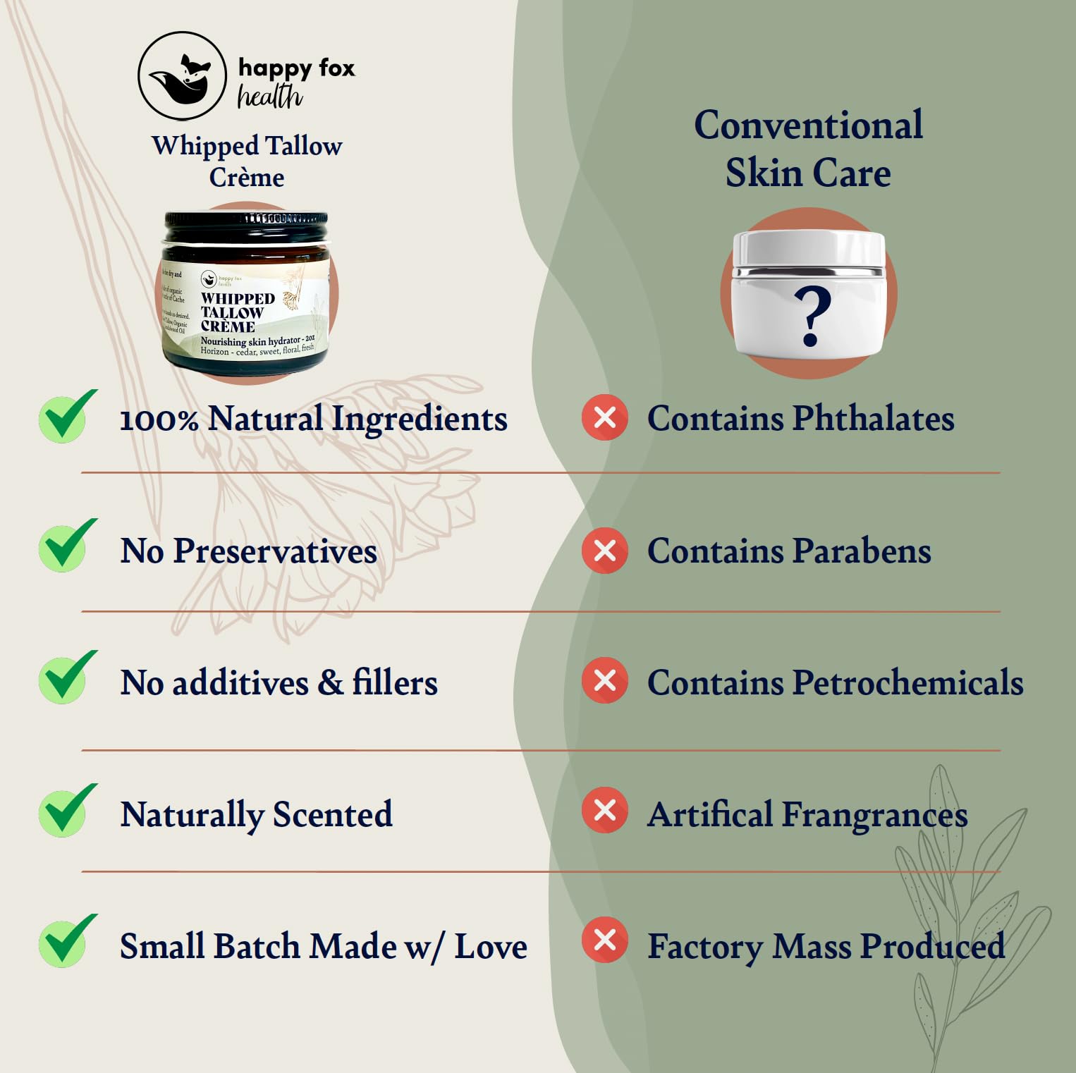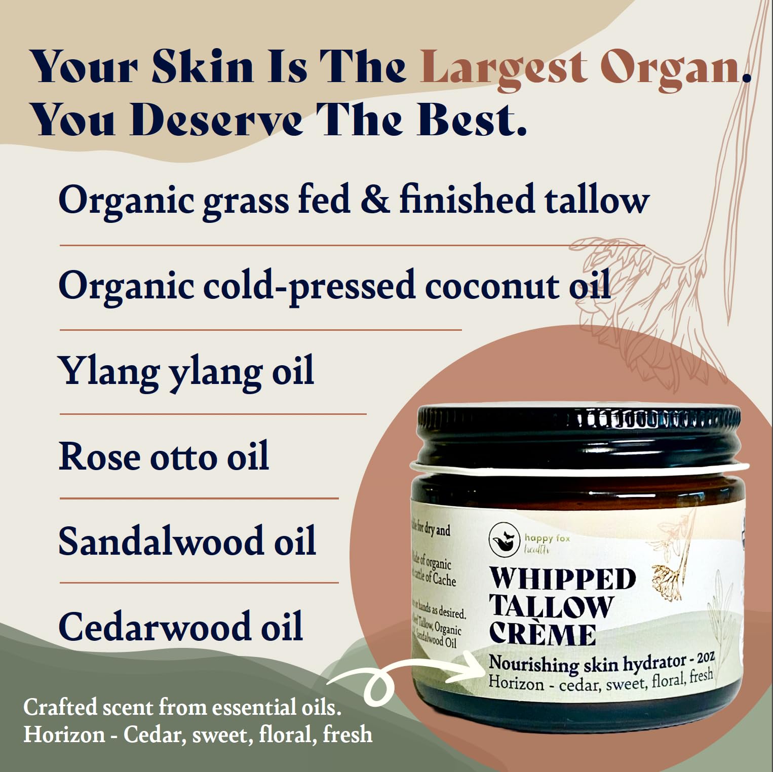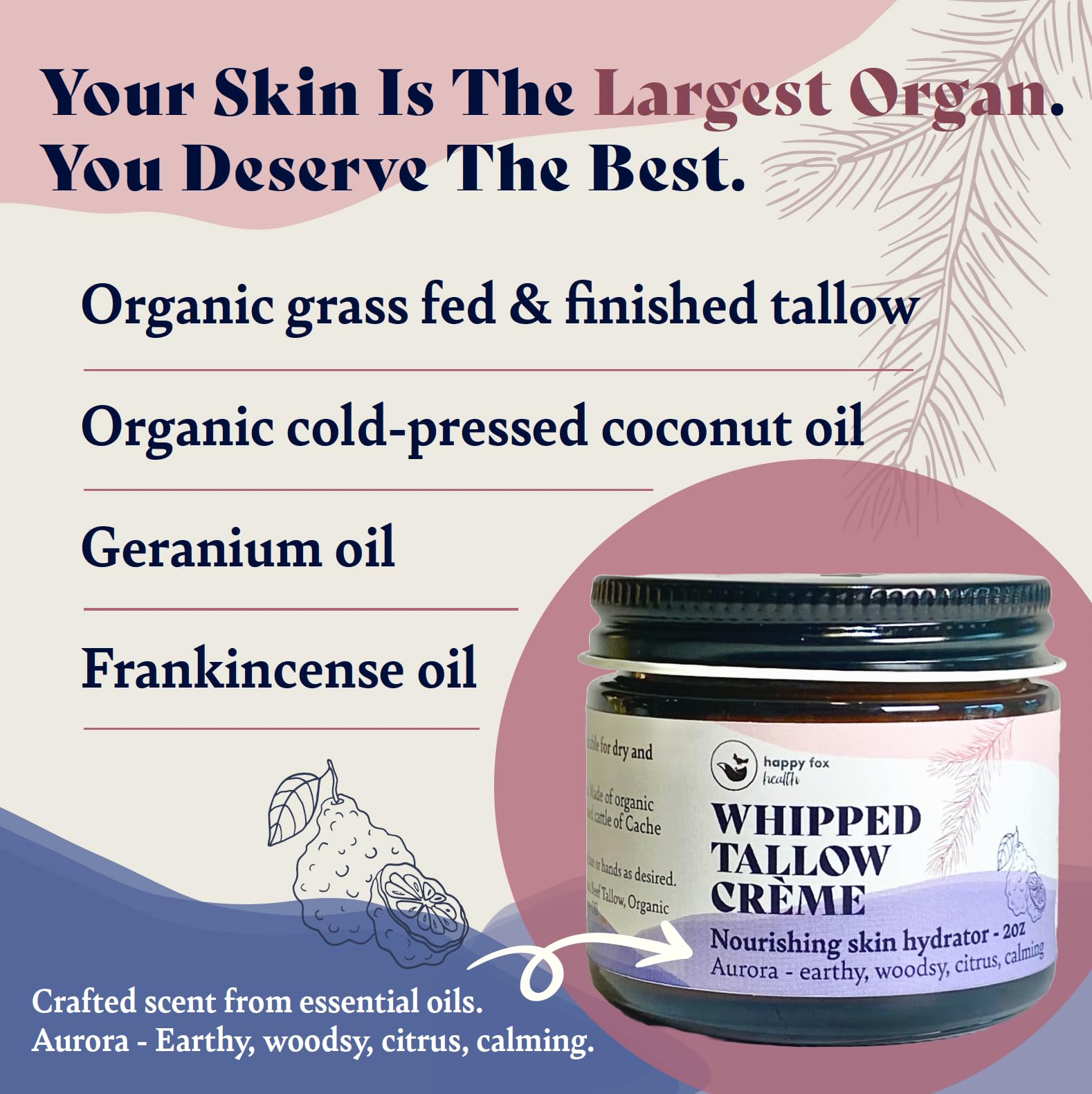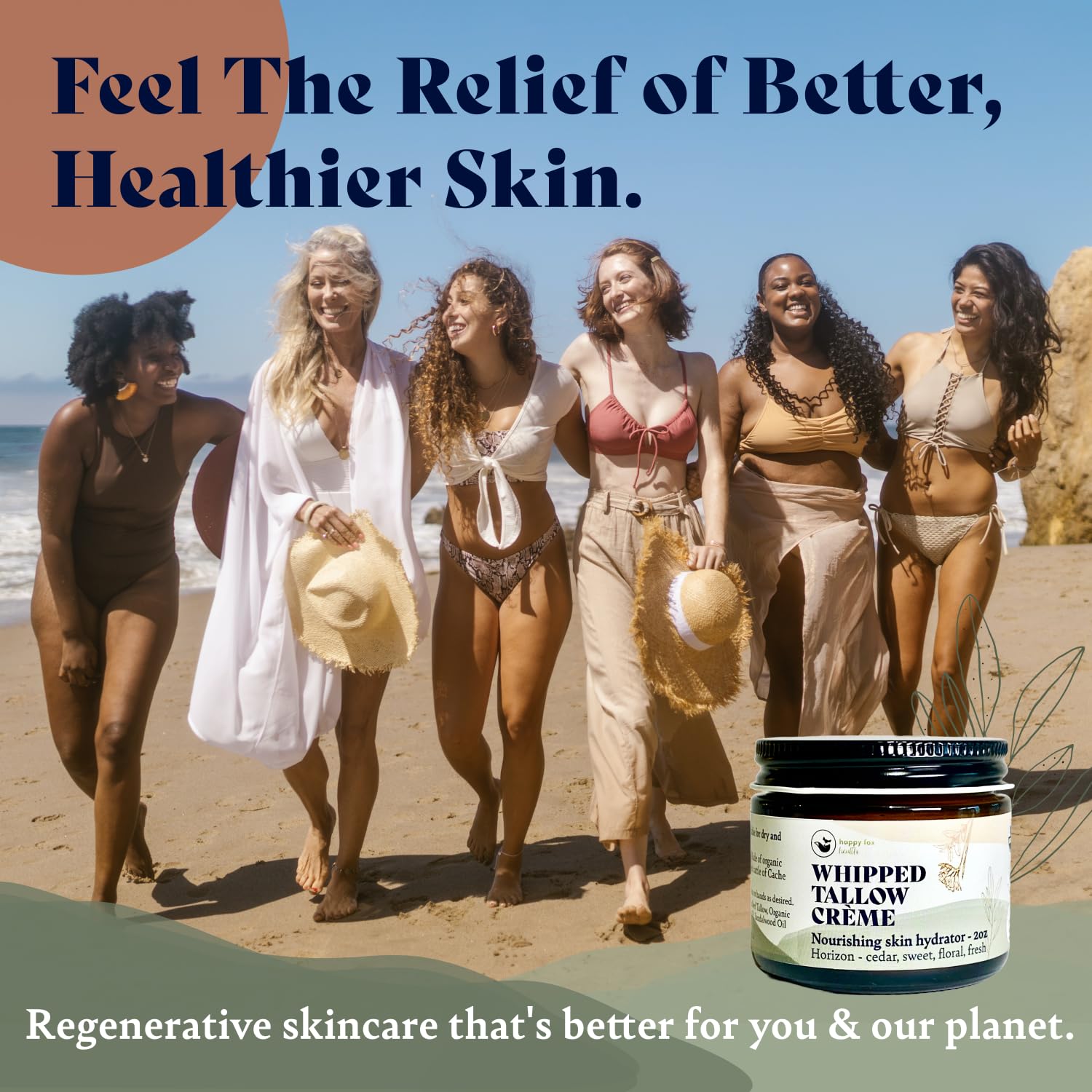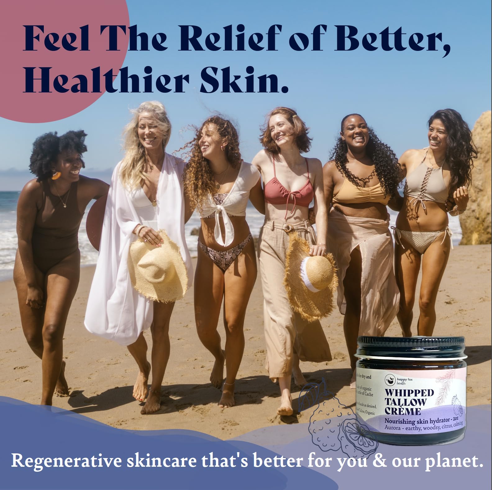- DEEPLY NOURISHES SKIN: Our whipped tallow balm provides a boost to your natural skin barrier, strengthening elasticity and reducing the appearance of fine lines. Gentle absorbtion allows this tallow moisturizer to be suitable for sensitive or allergy prone skin. And a soothing relief for eczema, psoriasis or dry / cracked skin.